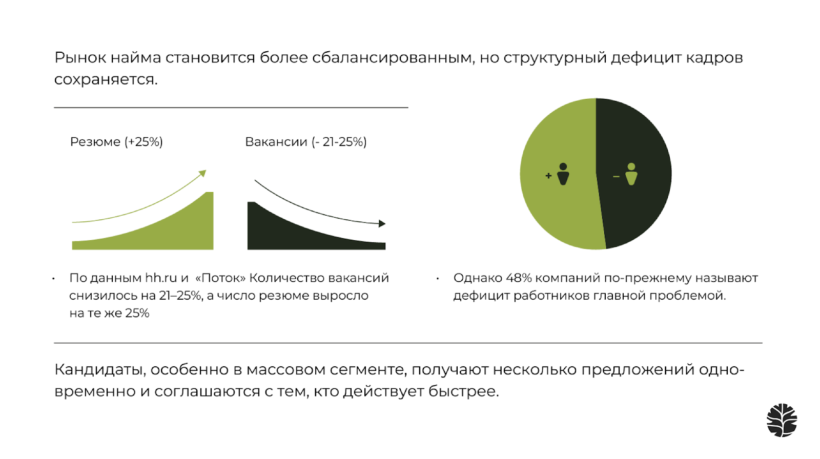 - One day offer становится новой нормой: оффер в день собеседования — конкурентное преимущество.