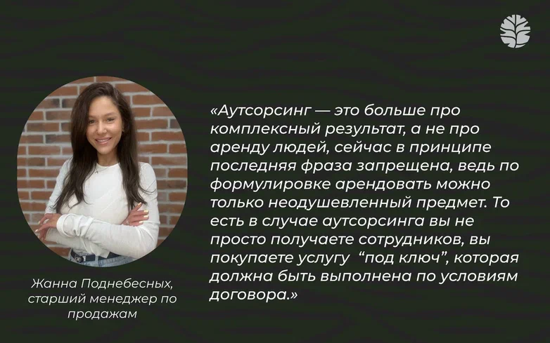 В отличие от заемного труда, который был запрещен с 2016 года, аутсорсинг не предполагает передачи управления персоналом заказчику. Именно в этом — ключевое юридическое отличие.