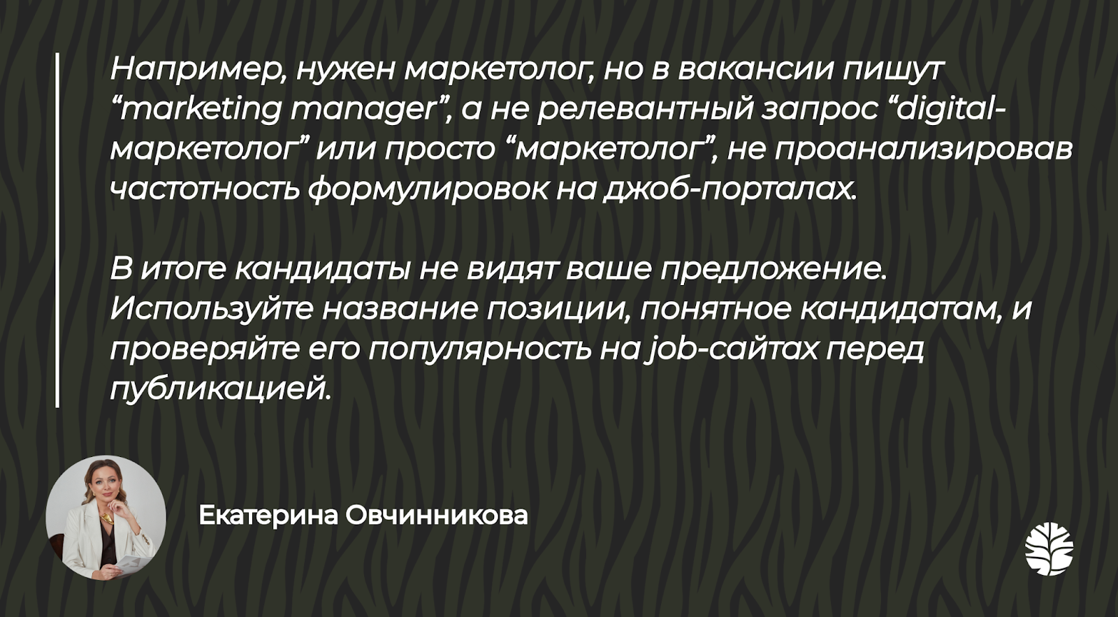 Чтобы разобраться, как составлять вакансии, которые действительно работают на привлечение кандидатов, мы обратились к Екатерине Овчинниковой — основателю и CEO ГК «А.Н.Т.», одного из ведущих рекрутинговых и консалтинговых агентств в России. Екатерина поделилась профессиональными наблюдениями о том, какие формулировки усиливают вакансию, а какие наоборот, отталкивают потенциальных кандидатов.