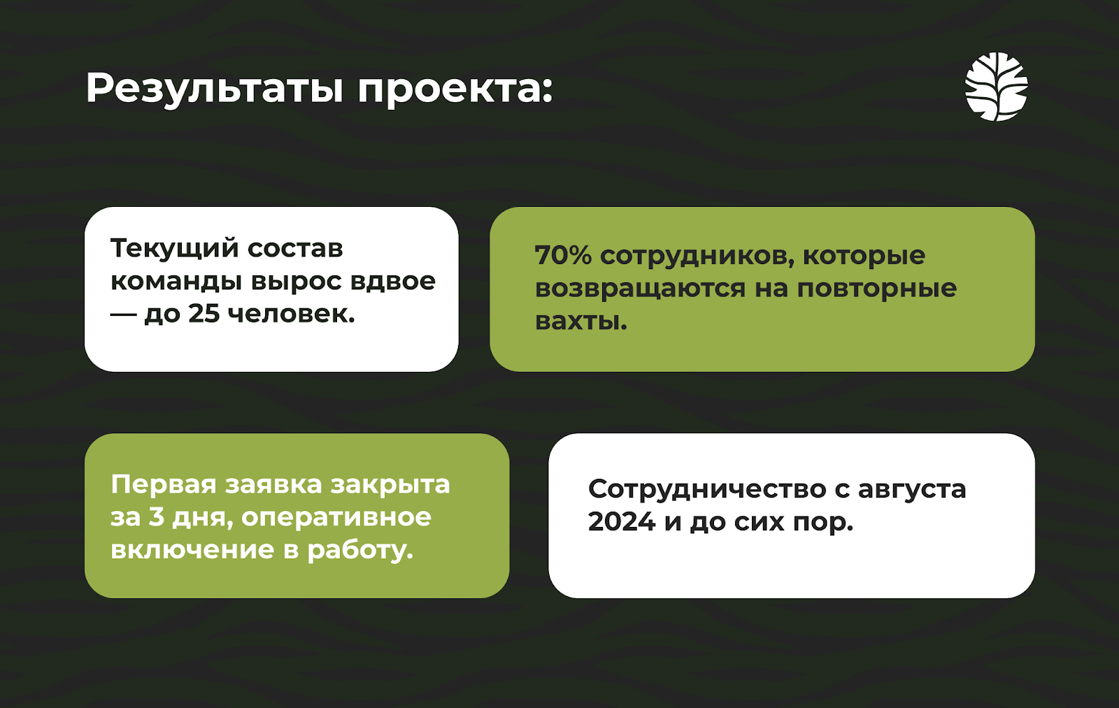 Мы не просто выводим людей. Мы выстраиваем рабочий механизм: где графики соблюдаются, люди возвращаются, логистика персонала не ложится на плечи клиента.